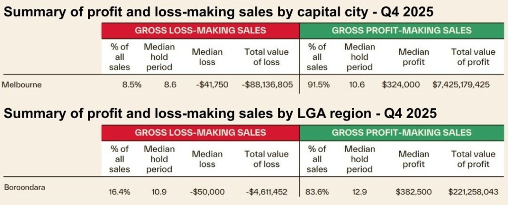 In comparison, 91.5% of all Melbourne sales overall made a profit, vs the 8.5% of sales that recorded a loss